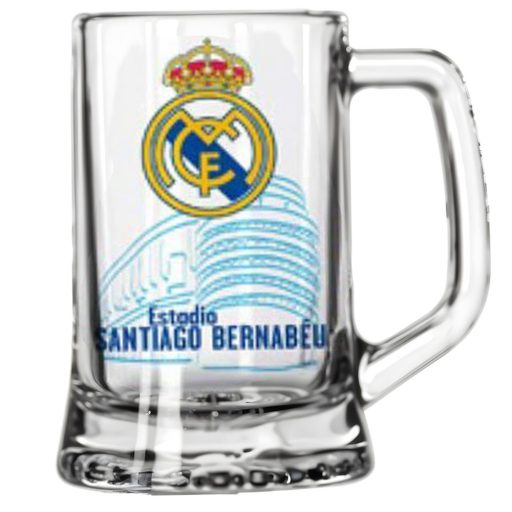 Emeld új szintre a szurkolói élményt ezzel az egyedi Real Madrid söröskorsóval, amelyet a legendás Santiago Bernabéu Stadion részletes grafikája és a klub hivatalos címere díszít. A korsó 500 ml-es űrtartalommal rendelkezik, így ideális méretű kedvenc söröd vagy bármely más ital számára.
